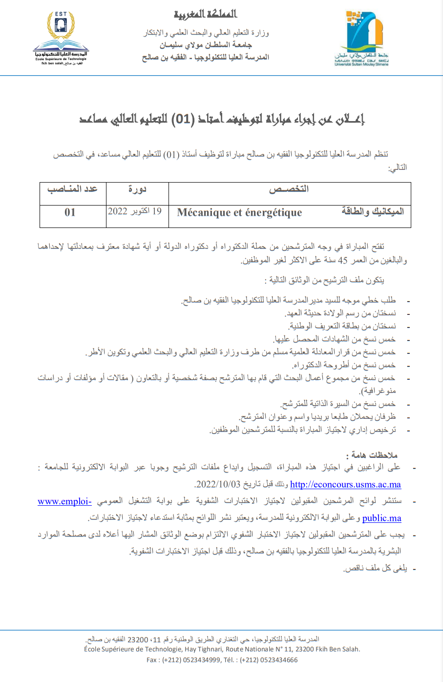 إعــــــلان-عن-إجراء-مباراة-لتوظيف-أستاذ-PA-Mécanique-et-énergétique.pdf